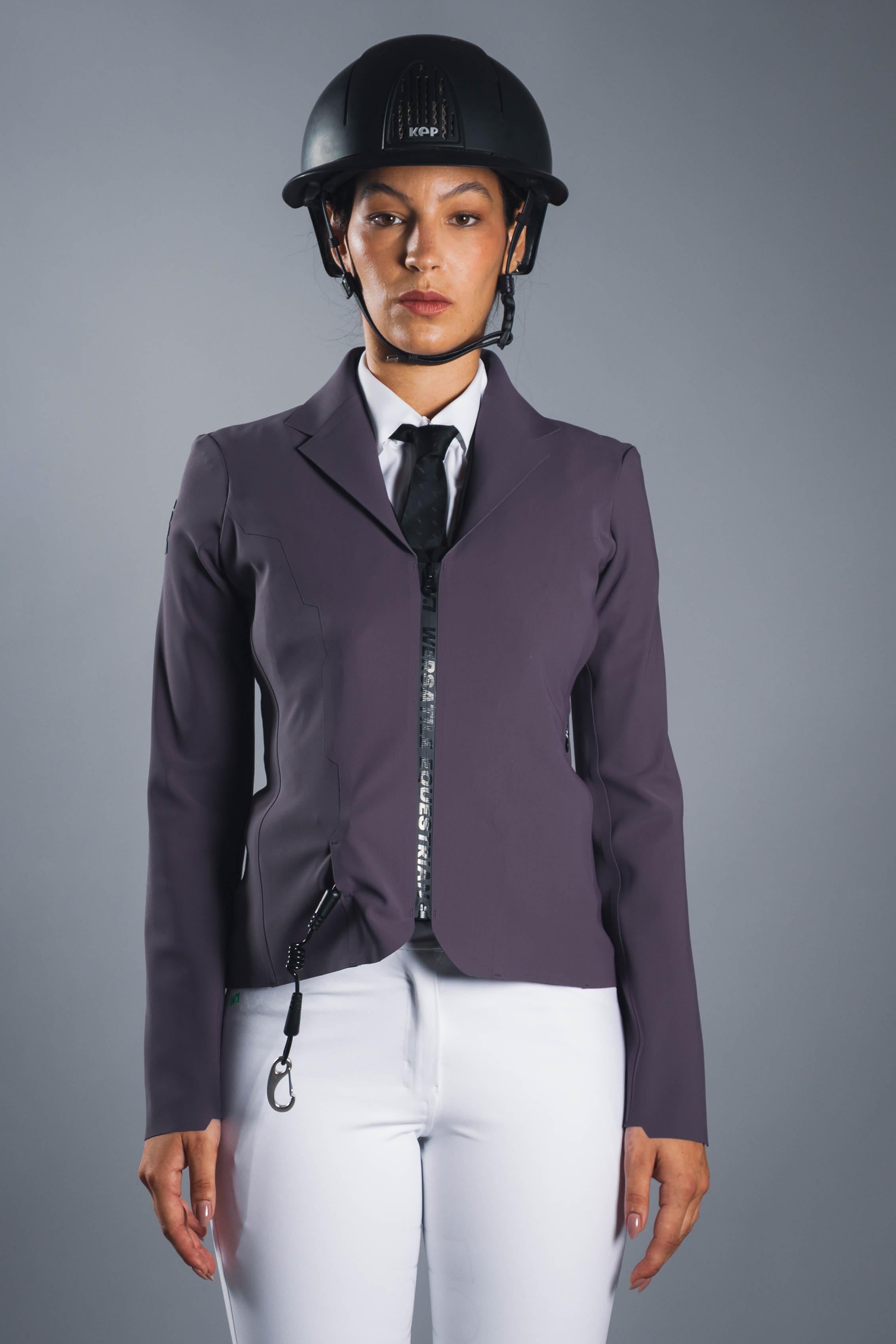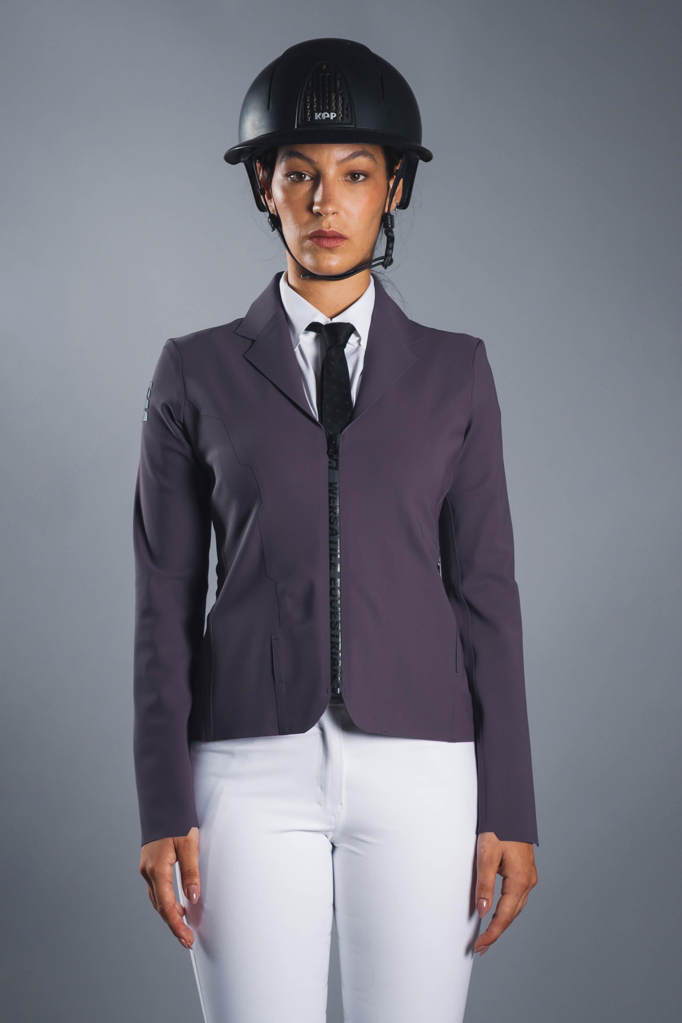 Notre veste signature épouse la posture des cavalières avec une coupe ajustée à 360°, dessinée par des lignes modernes et un tissu italien galbant.